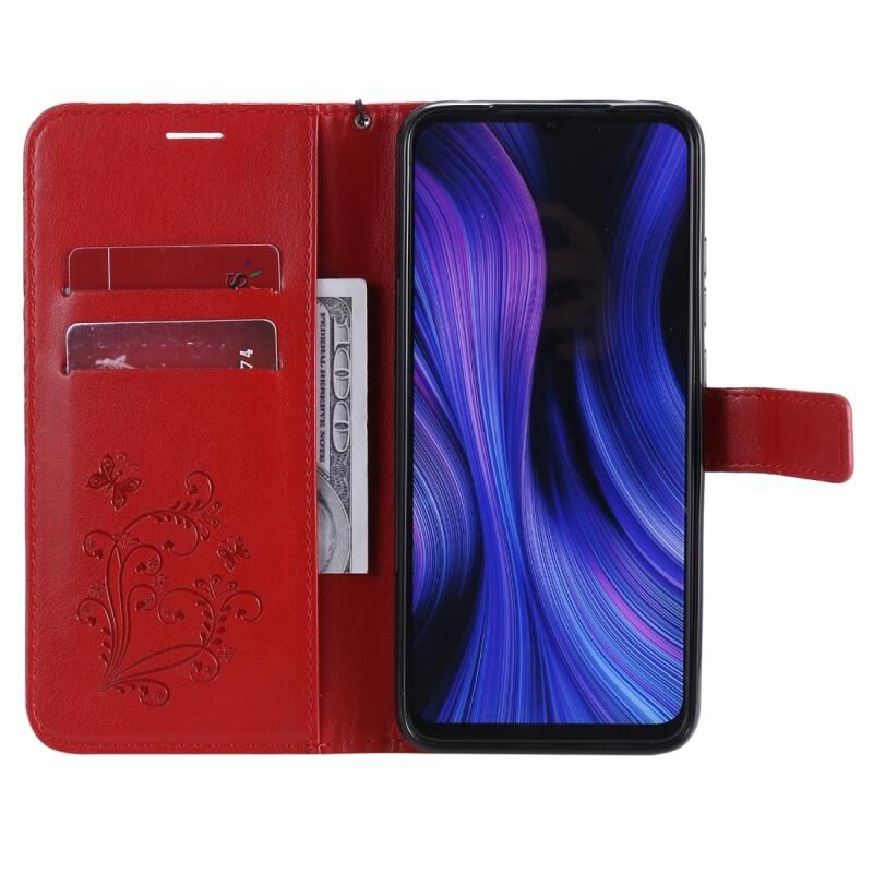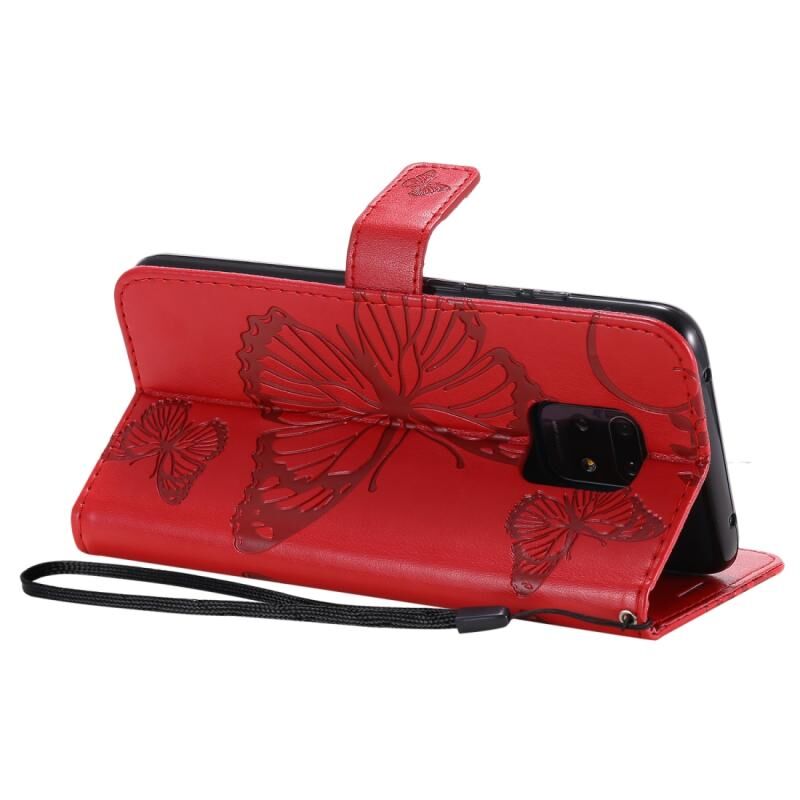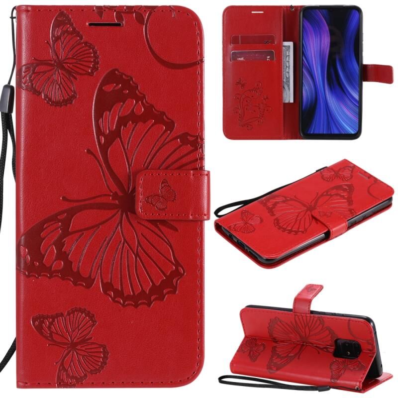 Για Xiaomi Redmi 10X 5G / 10X Pro 5G 3D Θήκη Δέρματος Οριζόντιας Αναδίπλωσης με ανάγλυφο σχέδιο πεταλούδων, με βάση στήριξης & υποδοχή κάρτας & πορτοφόλι & κορδόνι (Κόκκινο)