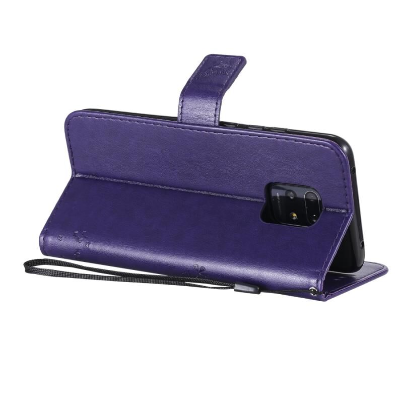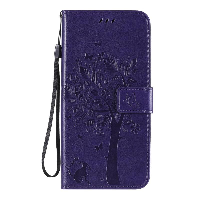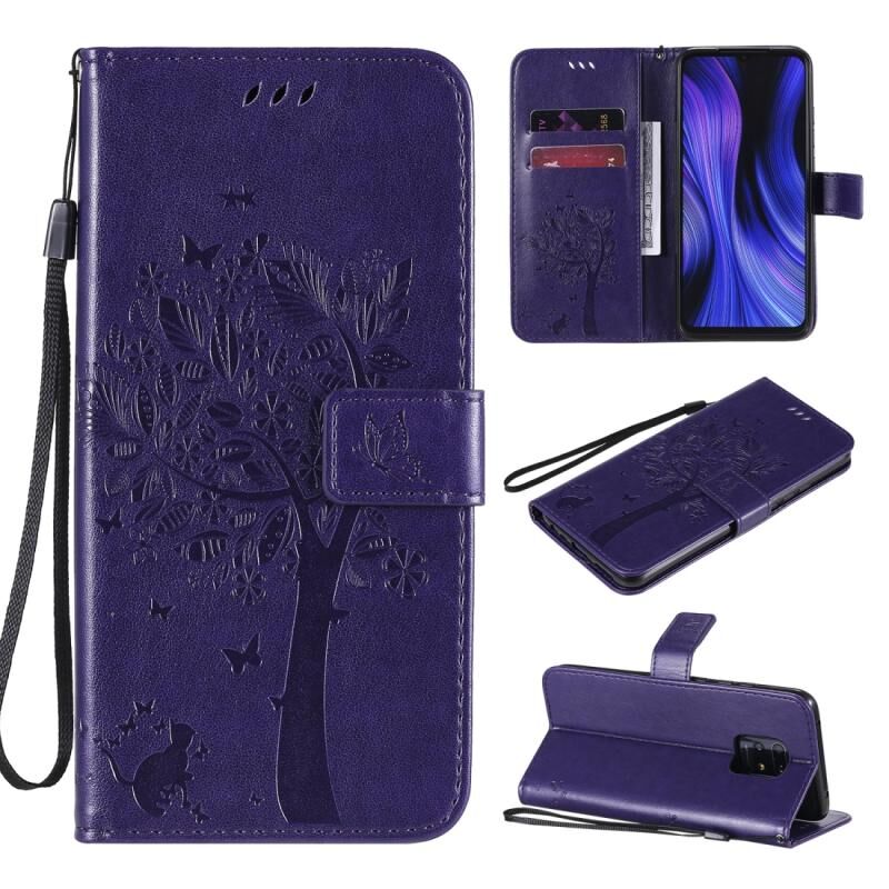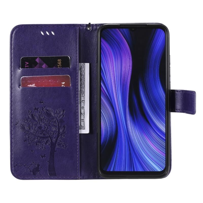Για Xiaomi Redmi 10X 5G / 10X Pro 5G Θήκη Δέρματος Οριζόντιας Αναδίπλωσης με ανάγλυφο σχέδιο Δέντρου & Γάτας με Στήριξη & Θήκες Καρτών & Πορτοφόλι & Λουρί (Ανοιχτό Μωβ)