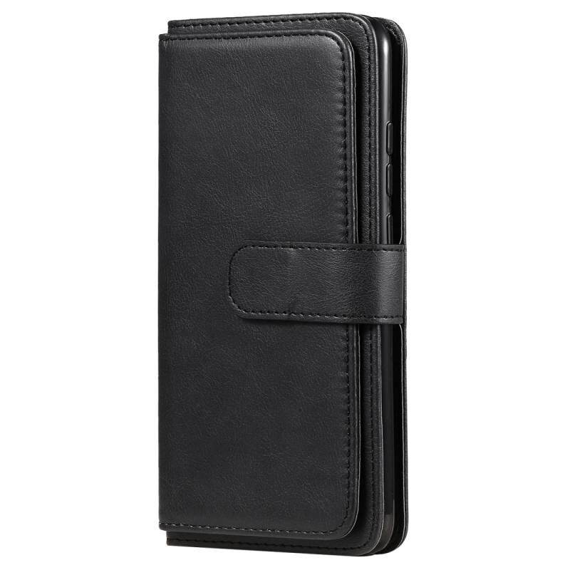Για Xiaomi Redmi 10X 5G / Redmi 10X Pro 5G Πολυλειτουργική μαγνητική χάλκινη πόρπη οριζόντια Flip αμιγούς χρώματος δερμάτινη θήκη με 10 υποδοχές για κάρτες & πορτοφόλι & θήκη & κορνίζα φωτογραφιών (μαύρο)