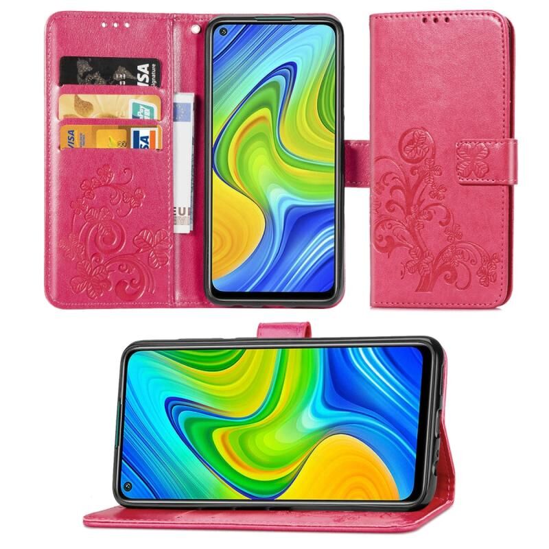 Για Xiaomi Redmi 10X / Note 9 Θήκη Δέρματος με Πατήματα Λουλουδιών Τριφυλλιού, με Στήριξη & Θήκες Καρτών & Πορτοφόλι & Λουρί Χεριού (Ρόδινο)