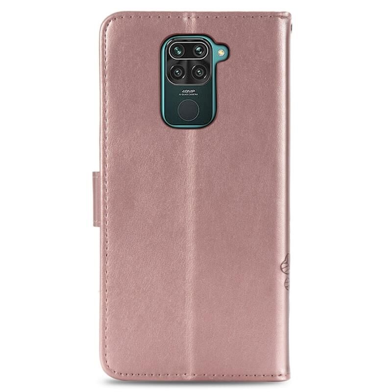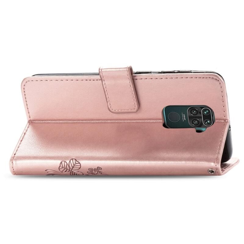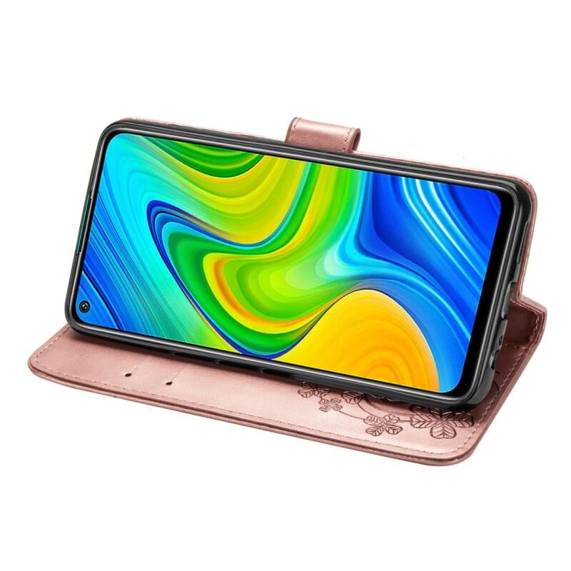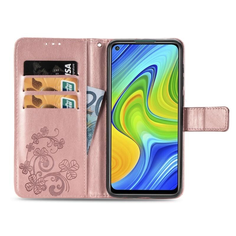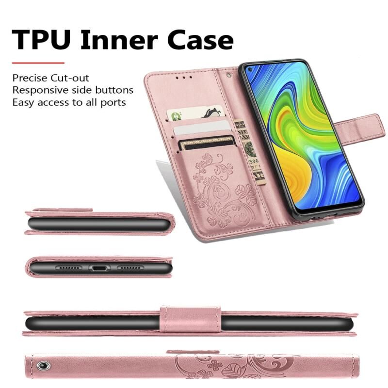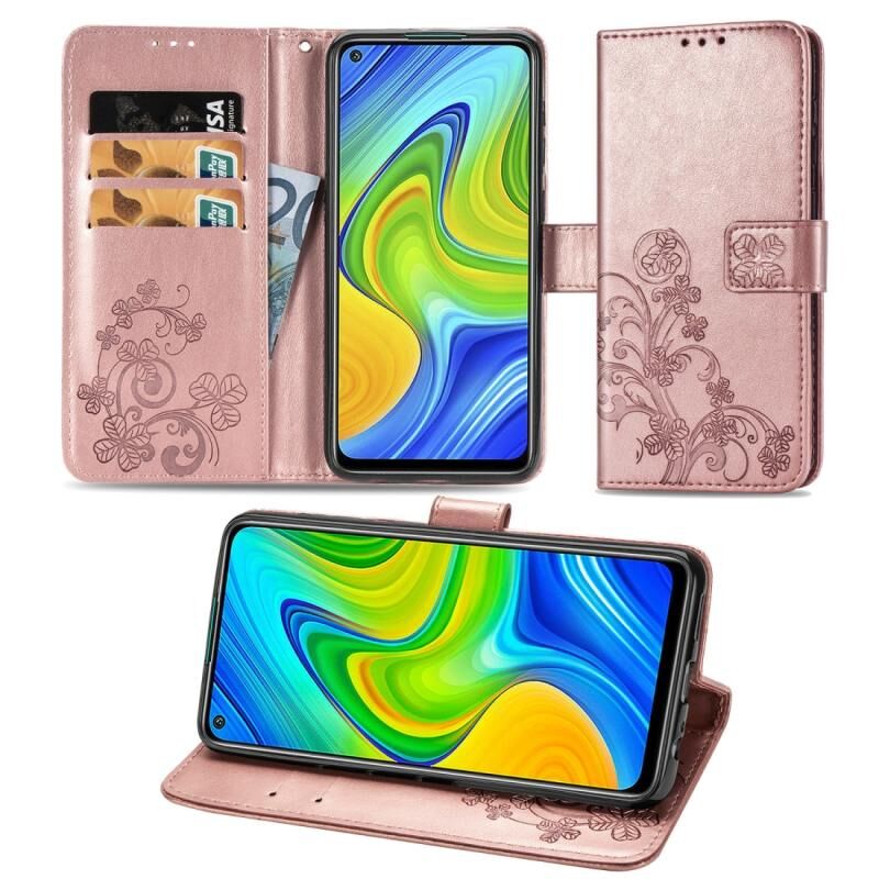 Για Xiaomi Redmi 10X / Note 9 Θήκη Δέρματος με Πατήματα Λουλουδιών Τριφυλλιού, με Στήριξη & Θήκες Καρτών & Πορτοφόλι & Λουρί Χεριού (Χρυσό Ρόδι)