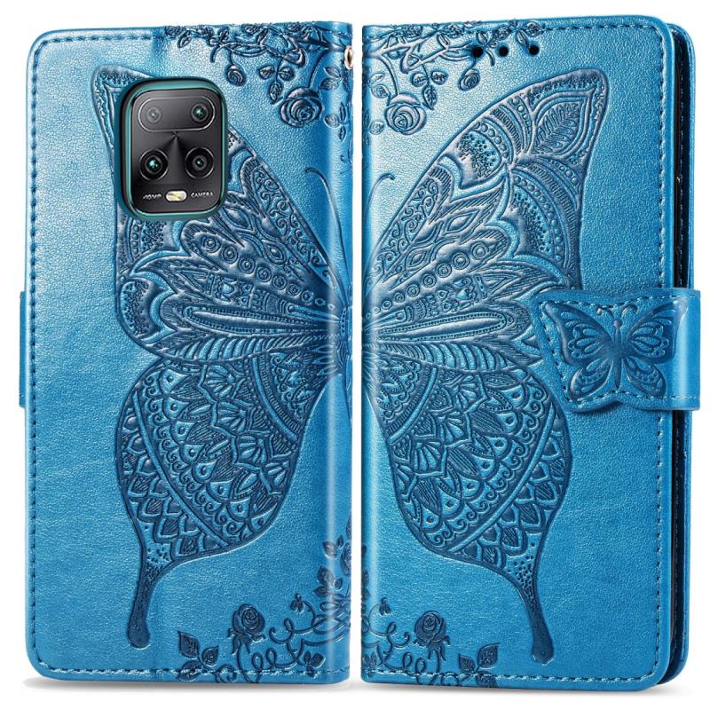 Θήκη δέρματος με σχέδια λουλουδιών και βάση για Xiaomi Redmi 10X Pro/10X (Μπλε)