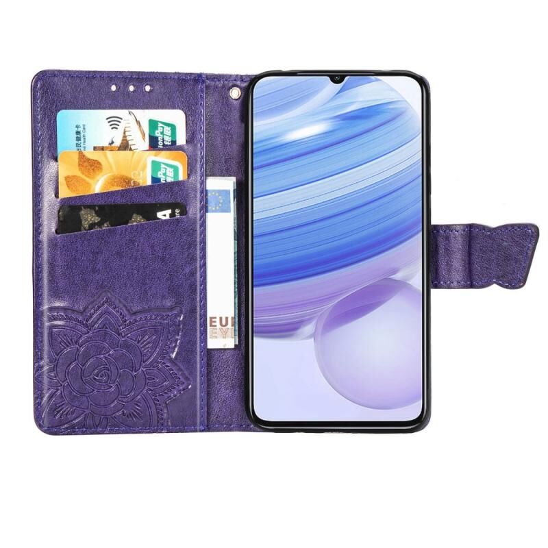 Θήκη δέρματος με σχέδια λουλουδιών και βάση για Xiaomi Redmi 10X Pro/10X (Σκούρο Μωβ)