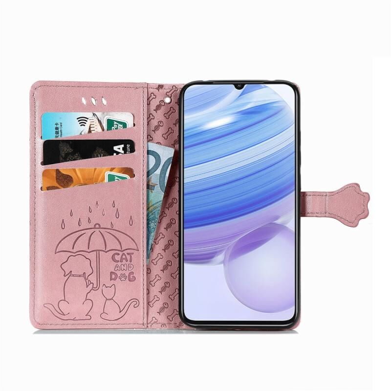 Για Xiaomi Redmi 10X Pro 5G/10X 5G, Χαριτωμένη Θήκη Δέρματος Οριζόντιας Αναδίπλωσης με ανάγλυφα σχέδια γάτας και σκύλου, με Στήριγμα / Θήκη Κάρτας / Πορτοφόλι / Λουρί (Ροζ)