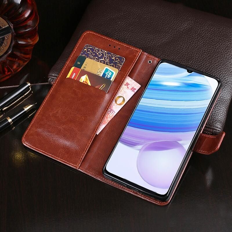 Για Xiaomi Redmi 10X Pro 5G idewei Crazy Horse Υφή οριζόντια Flip δερμάτινη θήκη με θήκη & υποδοχές καρτών & πορτοφόλι (μαύρο) (Μαύρο)
