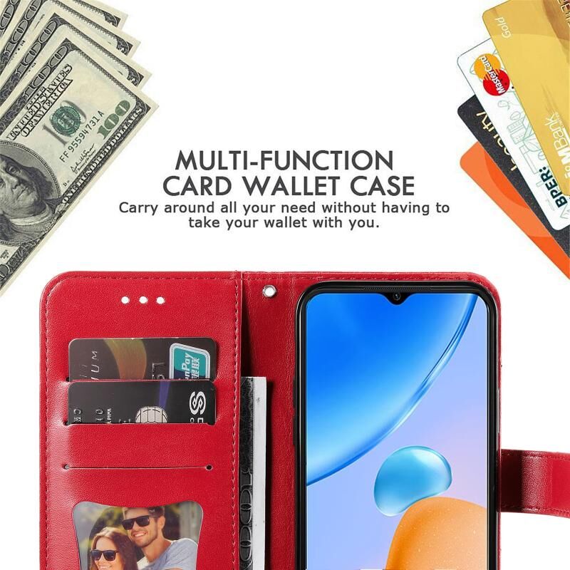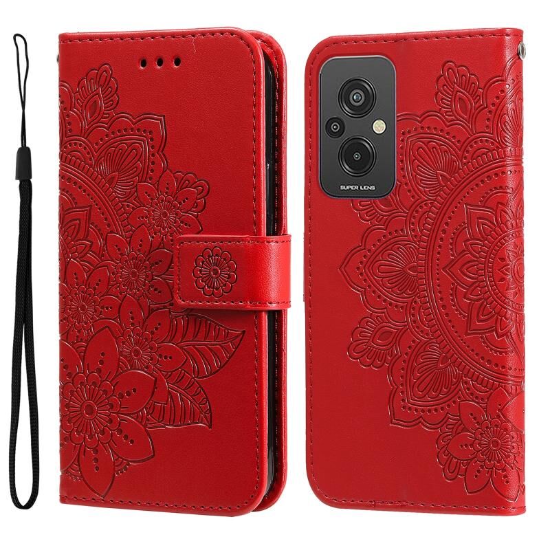 Θήκη τηλεφώνου δερμάτινη με ανάγλυφα 7 πέταλα λουλουδιών για Xiaomi Redmi 11 Prime 4G (Κόκκινο)