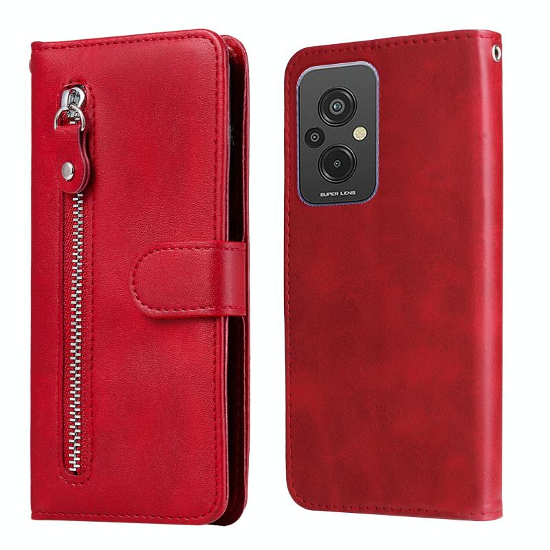 For Xiaomi Redmi 11 Prime 4G Calf Texture Zipper Leather Phone Case(Red)