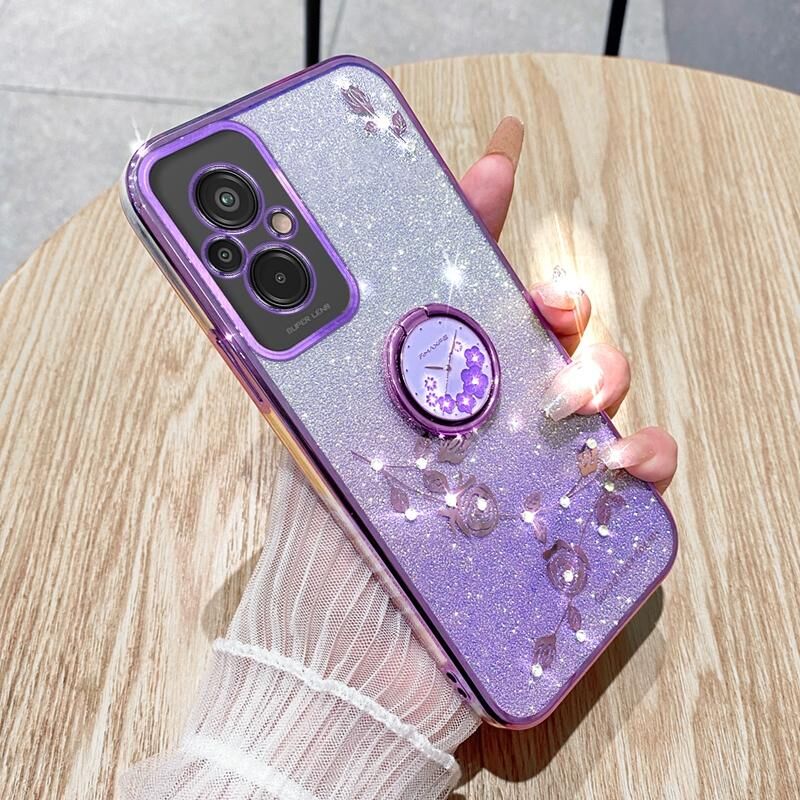 Για Xiaomi Redmi 11 Prime 4G Gradient Glitter Immortal Flower Ring All-inclusive τηλέφωνο υπόθεση (μωβ)