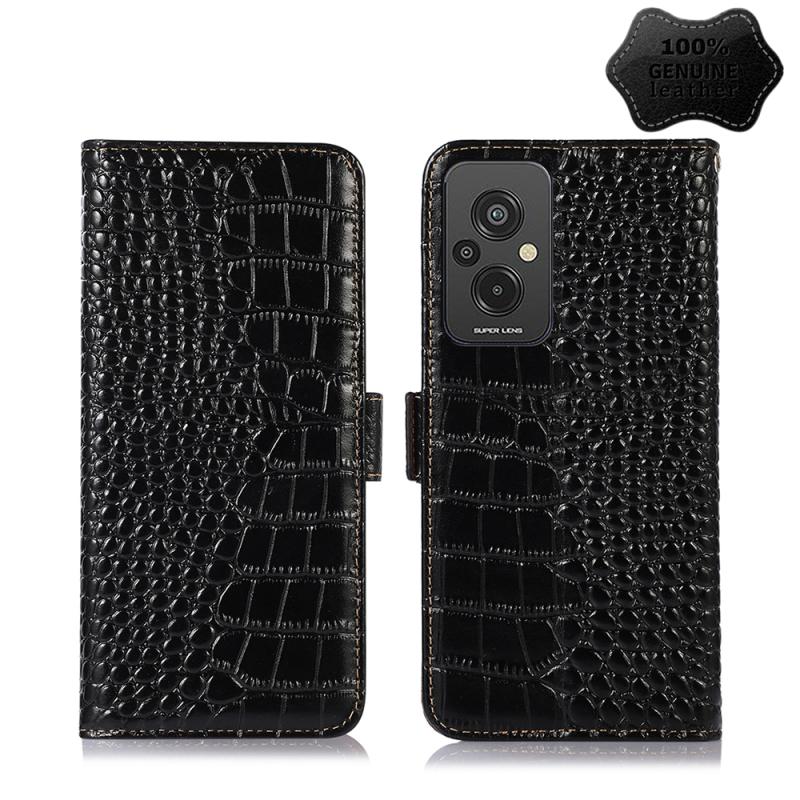 For Xiaomi Redmi 11 Prime 4G Magnetic Crocodile Texture Genuine Leather RFID Phone Case(Black)