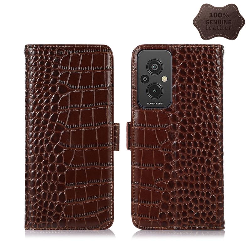 For Xiaomi Redmi 11 Prime 4G Magnetic Crocodile Texture Genuine Leather RFID Phone Case(Brown)