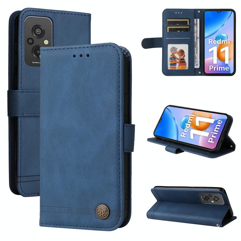 For Xiaomi Redmi 11 Prime 4G Skin Feel Life Tree Metal Button Leather Phone Case(Blue)