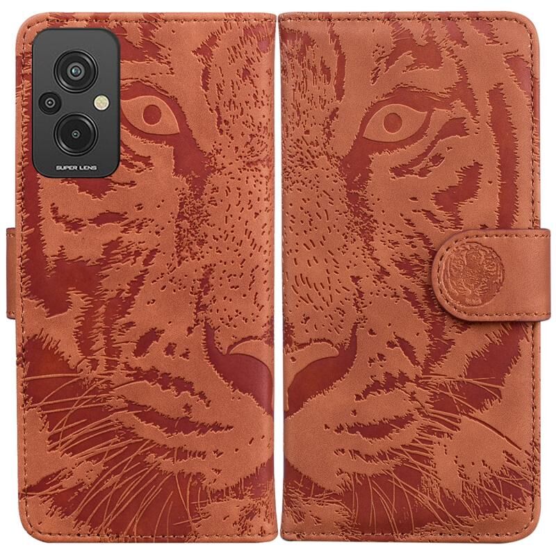 Για Xiaomi Redmi 11 Prime 4G Tiger ανάγλυφο μοτίβο δερμάτινη θήκη τηλεφώνου (καφέ)