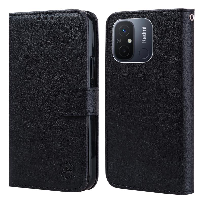 For Xiaomi Redmi 11A / 12C Skin Feeling Oil Leather Texture PU + TPU Phone Case(Black)