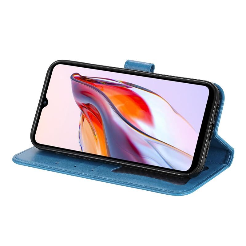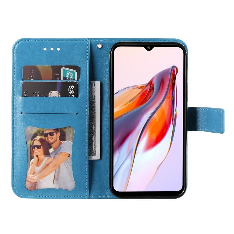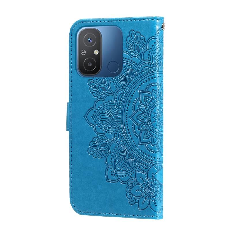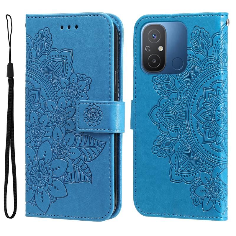 Θήκη τηλεφώνου από δέρμα με ανάγλυφα 7 πέταλα λουλουδιών για Xiaomi Redmi 11A 4G/12C (Μπλε)