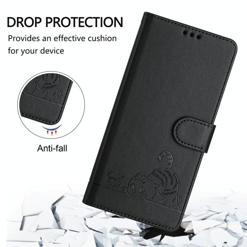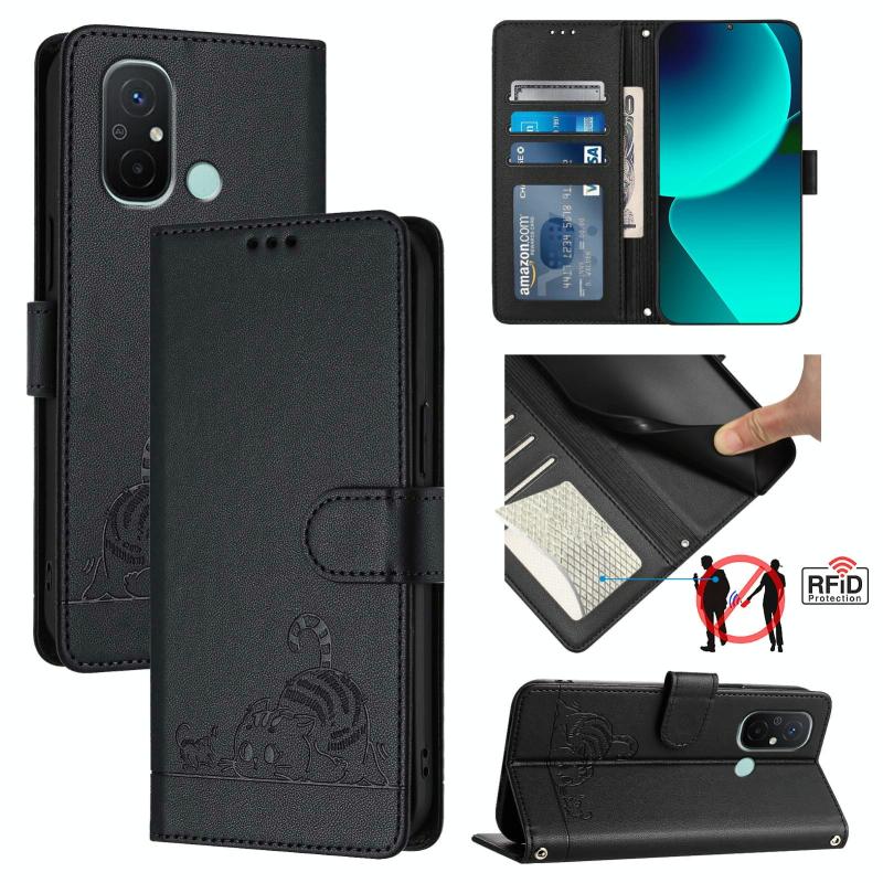Για Xiaomi Redmi 11A Θήκη PU με σχέδιο Γάτας/Ποντικού & Λουρί Καρπού (Μαύρο)