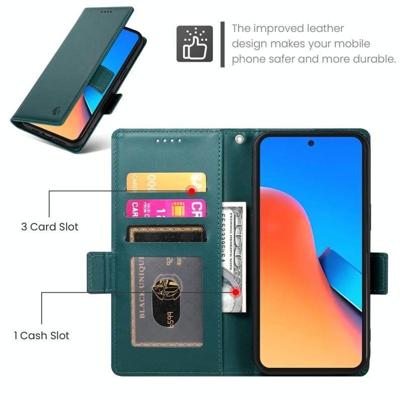 Για Xiaomi Redmi 12 4G/5G / Σημείωση 12R Side Πόρπη μαγνητική παγωμένη δερμάτινη θήκη τηλεφώνου (Σκούρο πράσινο)