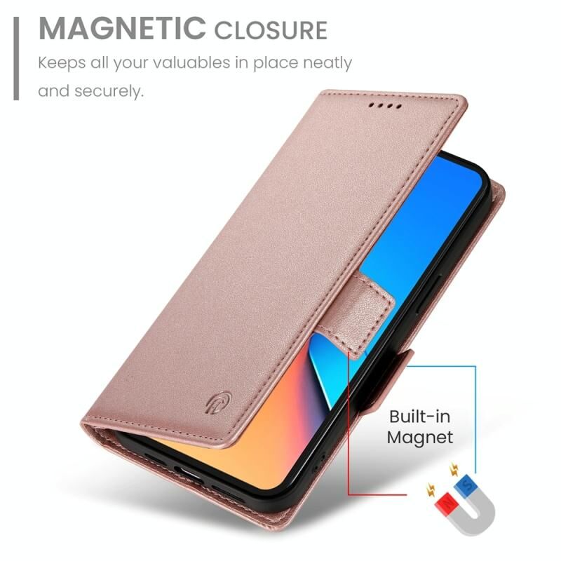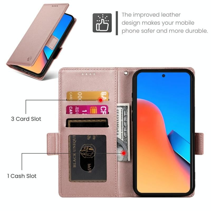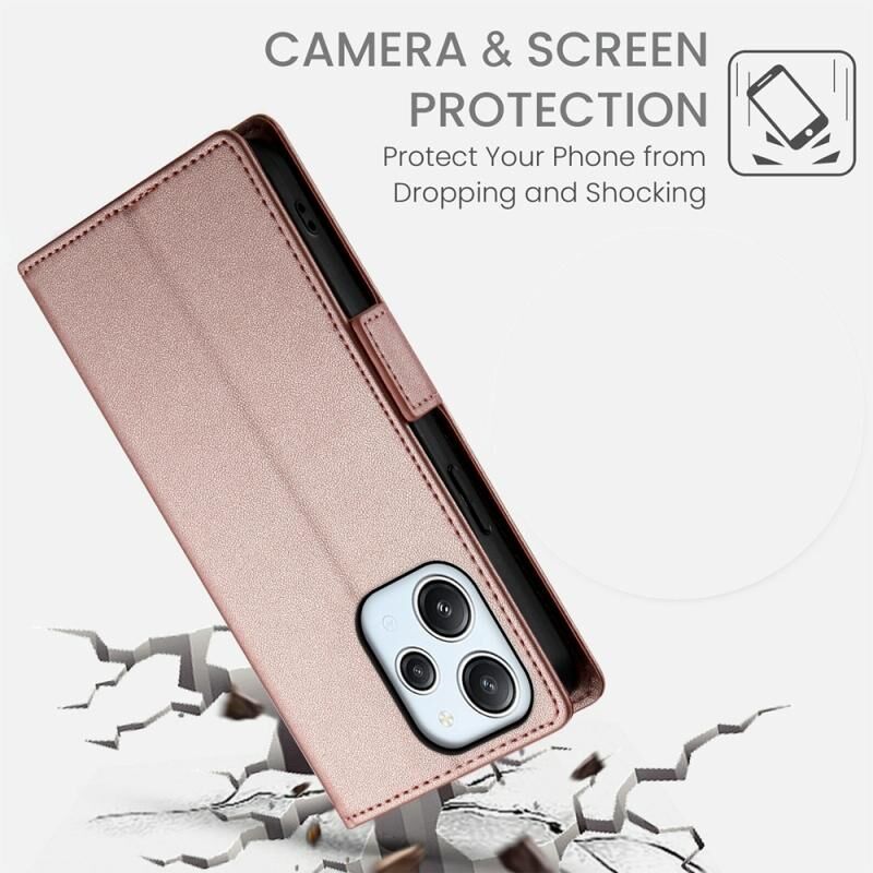 Για Xiaomi Redmi 12 4G/5G / Σημείωση 12R Side Πόρπη μαγνητική παγωμένη δερμάτινη θήκη τηλεφώνου (Rose Gold)