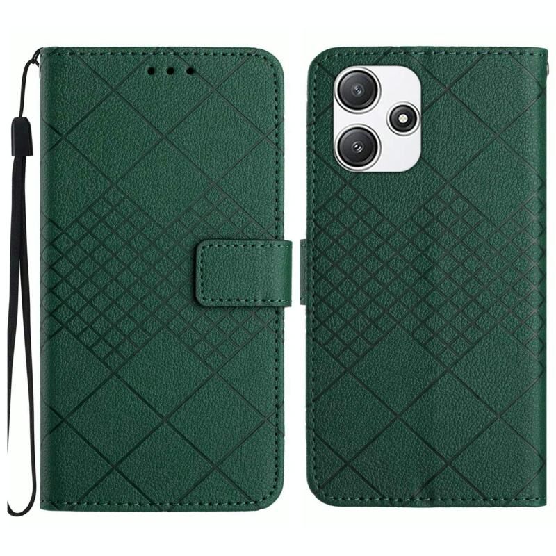 Για Xiaomi Redmi 12 4G / 5G / Poco M6 Pro 5G Rhombic Grid Texture Δερμάτινη θήκη τηλεφώνου (πράσινο)