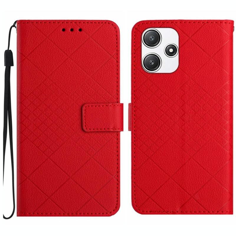 Για Xiaomi Redmi 12 4G / 5G / Poco M6 Pro 5G Rhombic Grid Texture Δερμάτινη θήκη τηλεφώνου (κόκκινο)