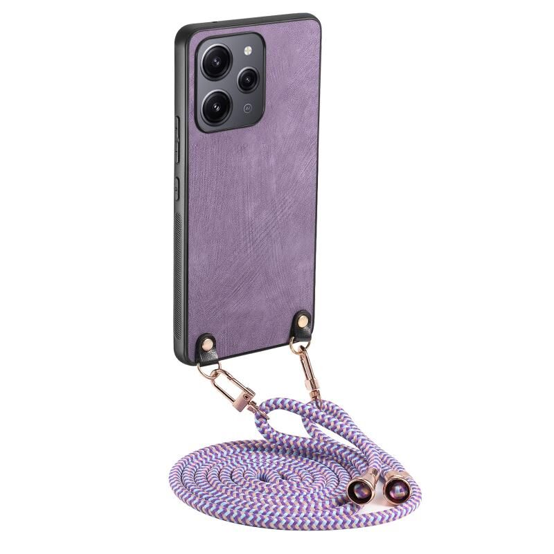 Για Xiaomi Redmi 12 4G / 5G εκλεκτής ποιότητας δέρμα PC πίσω κάλυμμα τηλέφωνο υπόθεση με λουράκι σταυρού (μωβ)
