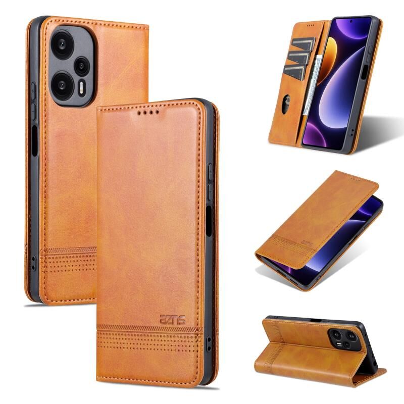 Για Xiaomi Redmi 12 4G AZNS Μαγνητικό μοσχάρι υφή Flip υπόθεση τηλεφώνου δέρμα (ανοιχτό καφέ) (Ανοιχτό καφέ)