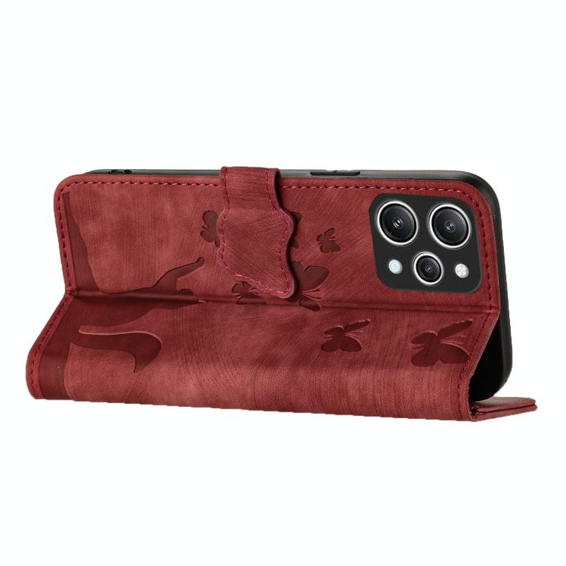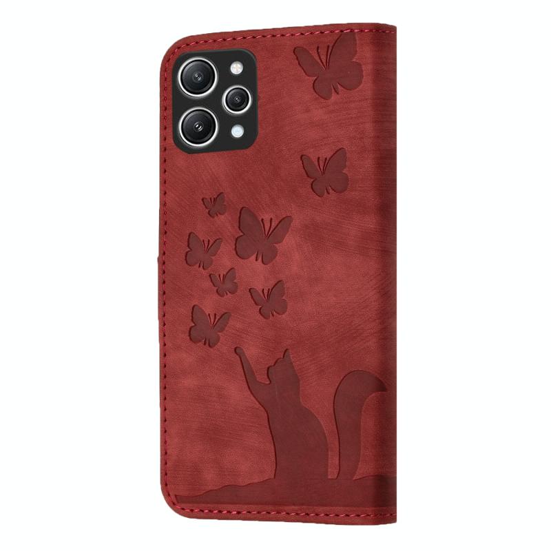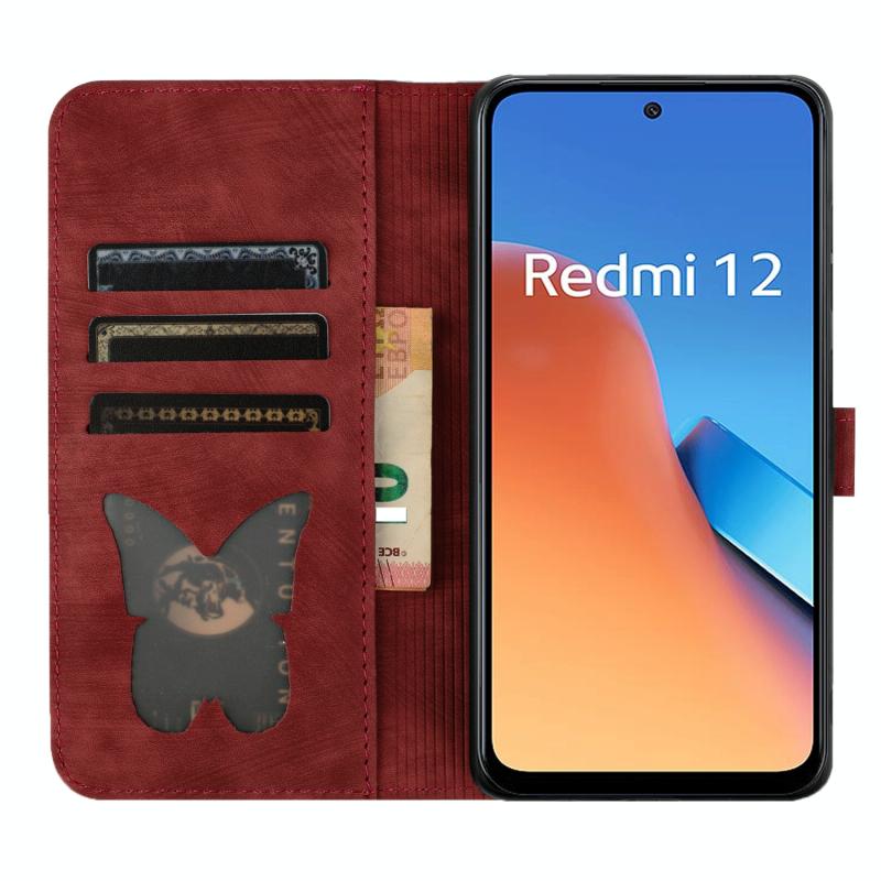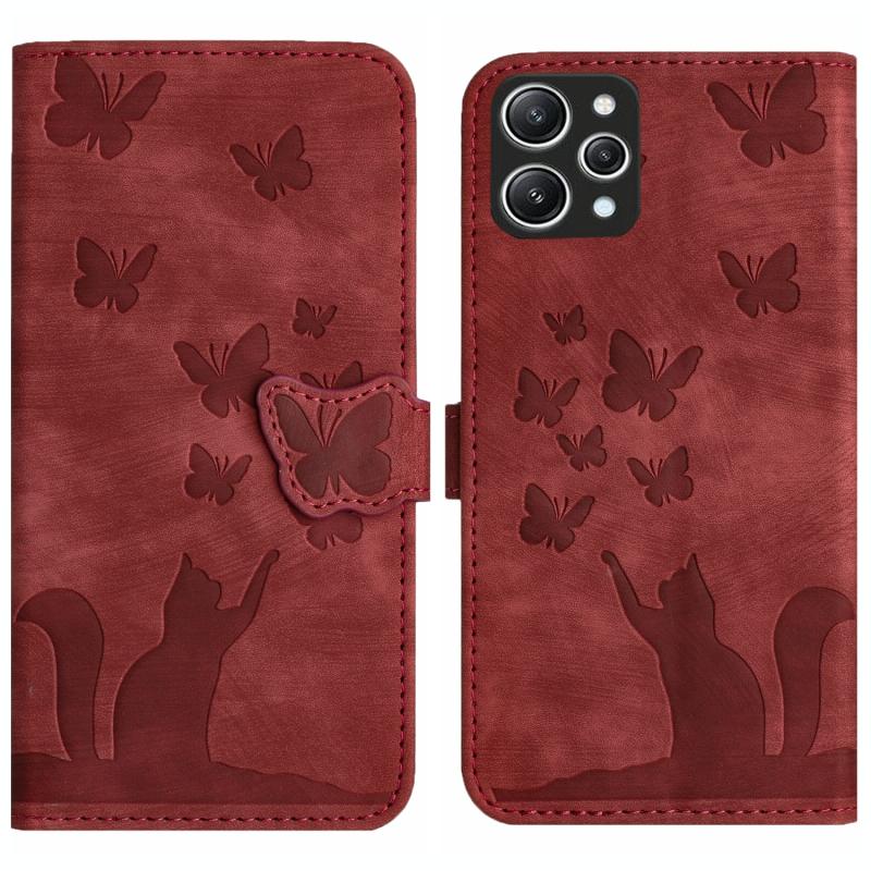 Θήκη δερμάτινη flip με ανάγλυφο σχέδιο γάτας για Xiaomi Redmi 12 4G (Κόκκινο)