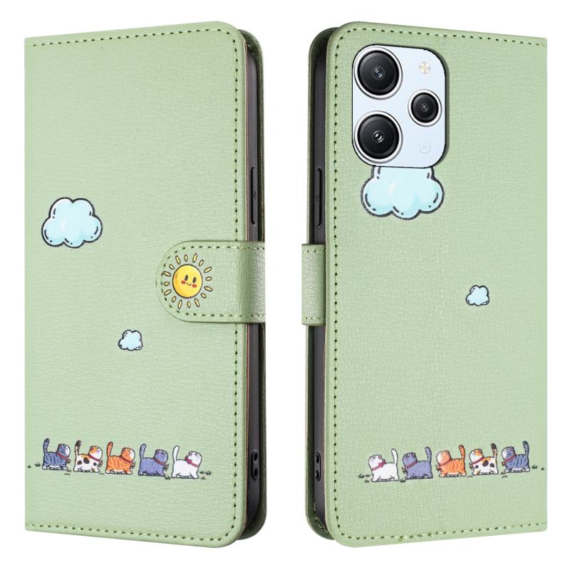 For Xiaomi Redmi 12 4G Cartoon Cats Leather Phone Case(Green)