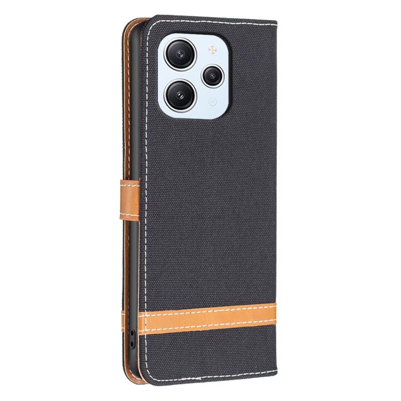 Θήκη τηλεφώνου δερμάτινη με υφή τζιν και χρωματικό σχέδιο για Xiaomi Redmi 12 4G (Μαύρο)