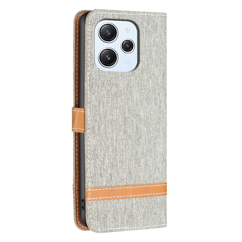 Θήκη τηλεφώνου δερμάτινη με υφή τζιν και χρωματικό σχέδιο για Xiaomi Redmi 12 4G (Γκρι)