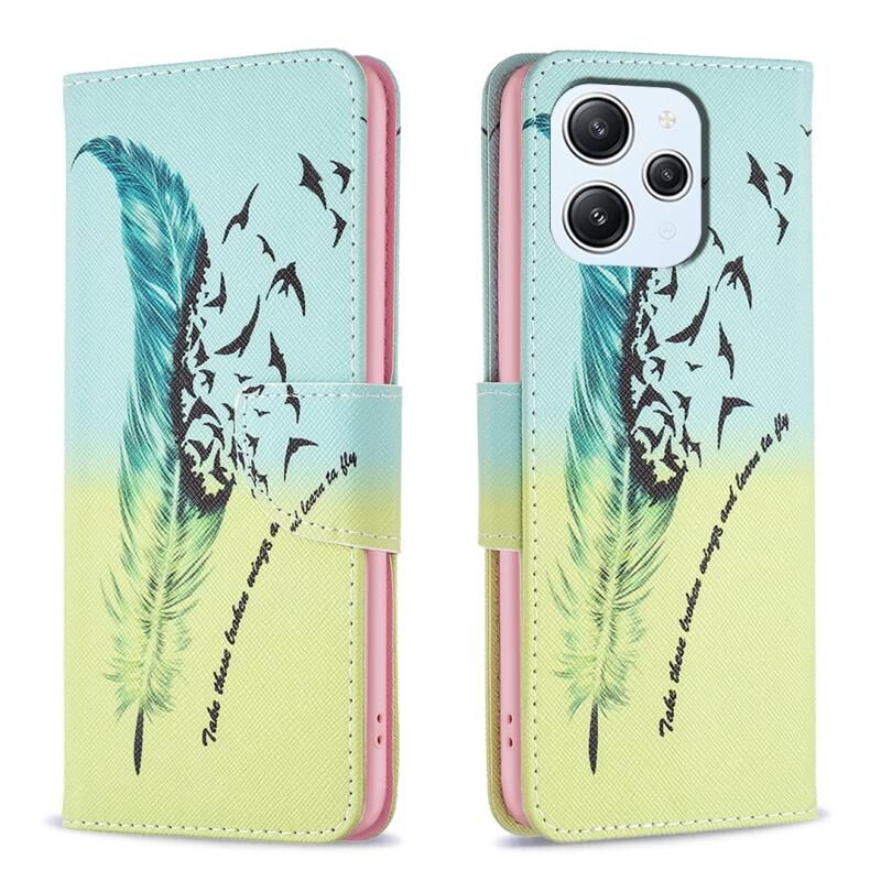 Θήκη τηλεφώνου δερμάτινη με έγχρωμο σχέδιο (φτερό) για Xiaomi Redmi 12 4G. (Κόκκινο)