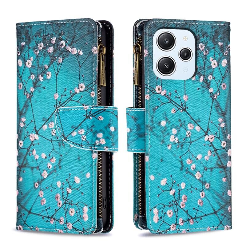 Θήκη τηλεφώνου δερμάτινη με φερμουάρ και πολύχρωμο σχέδιο για Xiaomi Redmi 12 4G (Λουλούδι Δαμασκηνιάς)