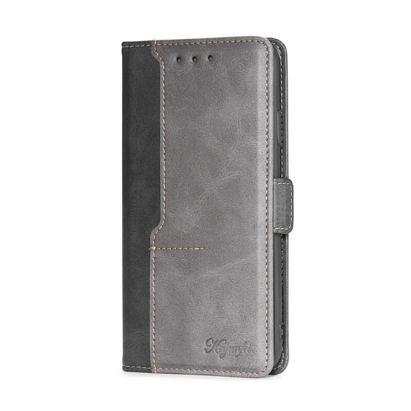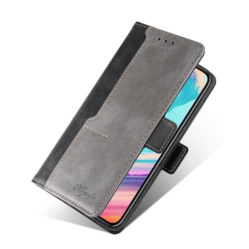 Για Xiaomi Redmi 12 4G αντίθεση χρώμα πλευρά πόρπη δερμάτινη θήκη τηλεφώνου (μαύρο + γκρι)