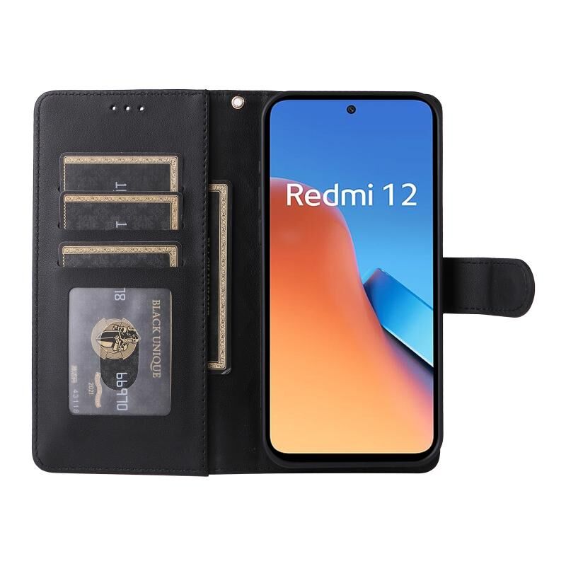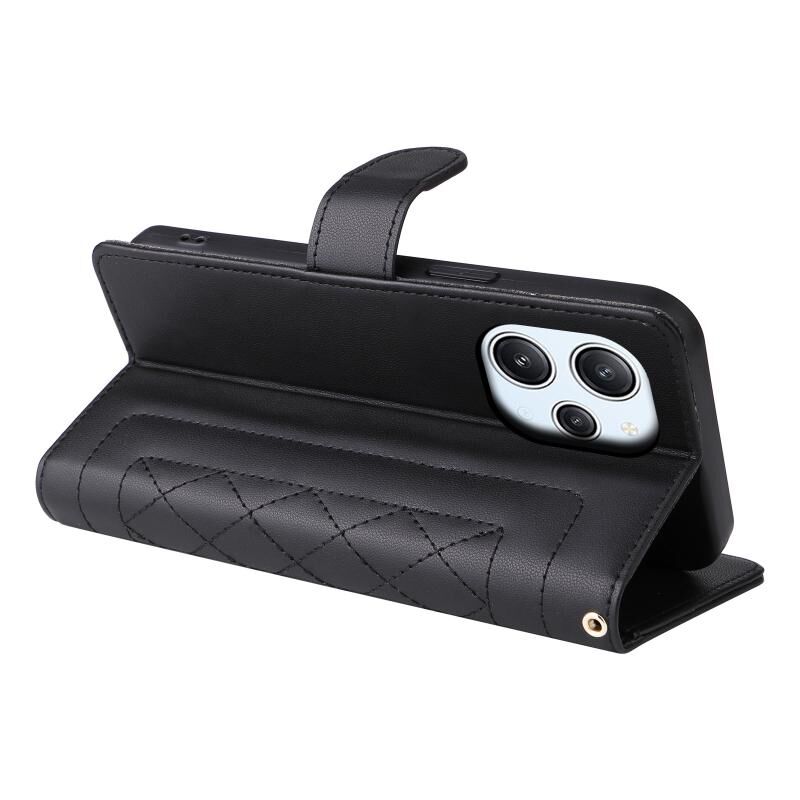Για Xiaomi Redmi 12 4G Diamond Lattice Δερμάτινη θήκη Flip Phone Case (Μαύρο)