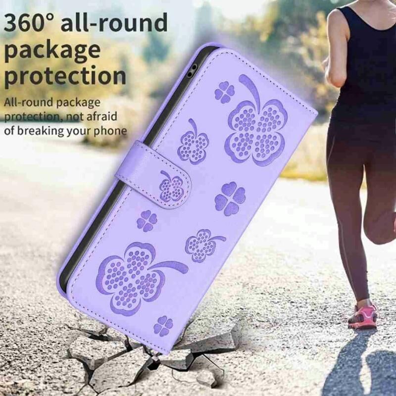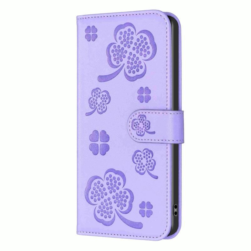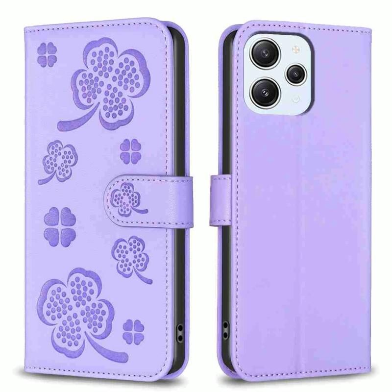 Για Xiaomi Redmi 12 4G τετράφυλλο ανάγλυφη δερμάτινη θήκη τηλεφώνου (Μωβ)