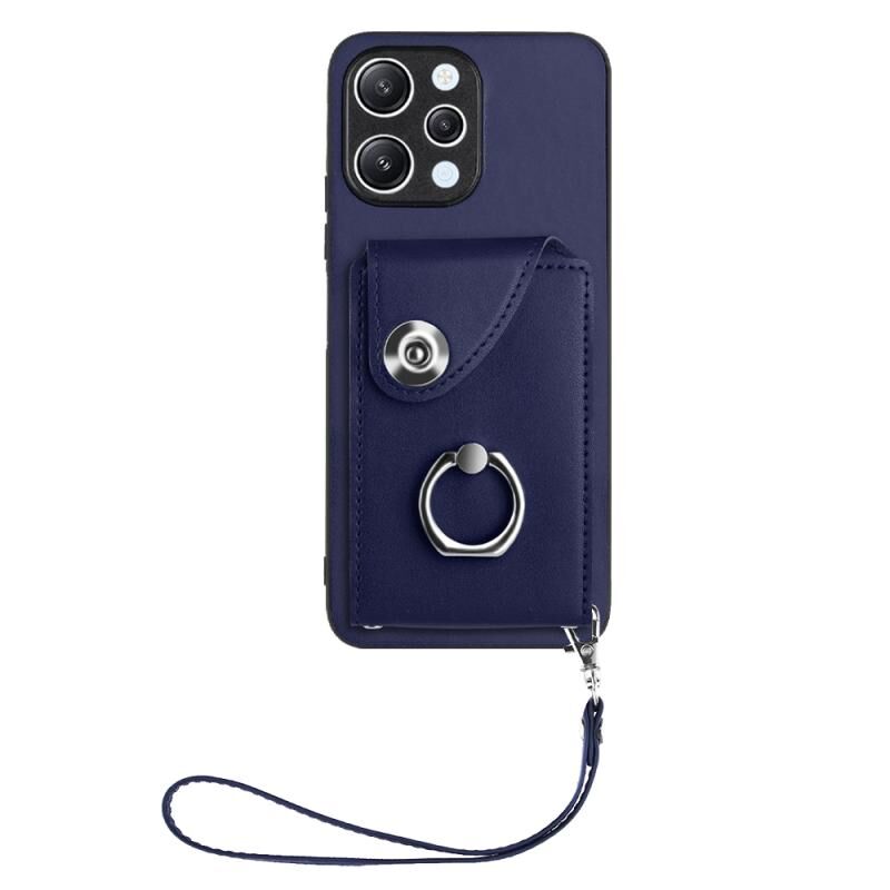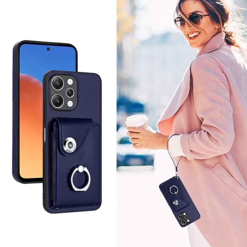 Για Xiaomi Redmi 12 4G Global Organ Card Bag Ring Holder PU υπόθεση τηλεφώνου με κορδόνι (Μπλε)