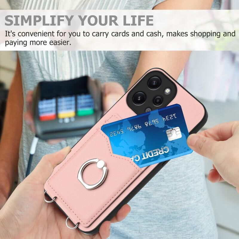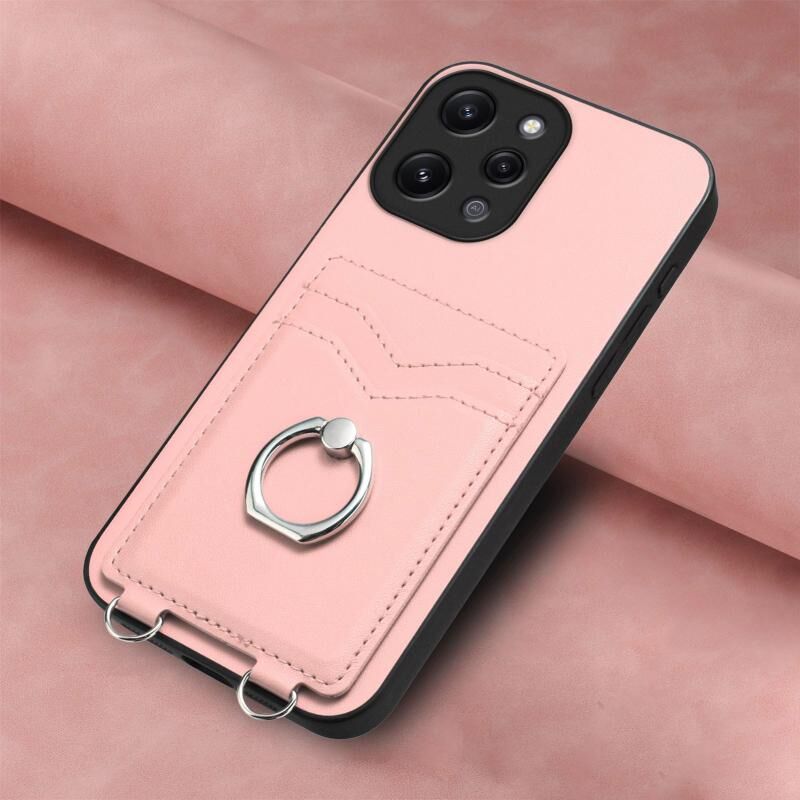 Για Xiaomi Redmi 12 4G Global R20 Δαχτυλίδι Κάτοχος κάρτας τηλέφωνο υπόθεση (Ροζ)
