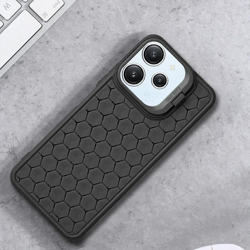 Για Xiaomi Redmi 12 4G κηρήθρα Ακτινοβολία κάτοχος TPU τηλέφωνο υπόθεση με κορδόνι (Μαύρο)