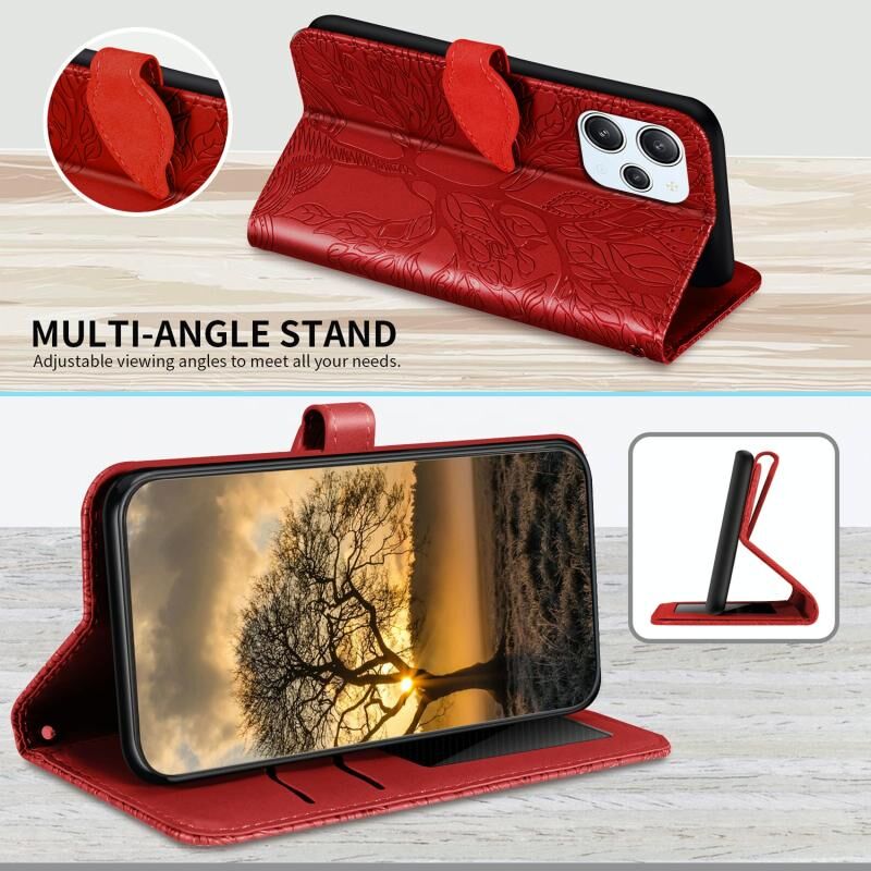 Για Xiaomi Redmi 12 4G ζωή του δέντρου ανάγλυφο μοτίβο οριζόντια Flip δέρμα τηλέφωνο υπόθεση (κόκκινο)