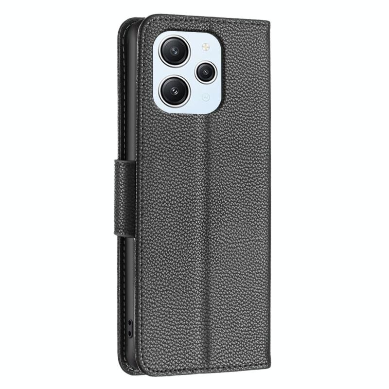 Για Xiaomi Redmi 12 4G Litchi υφή καθαρό χρώμα δερμάτινη θήκη τηλεφώνου (μαύρο)