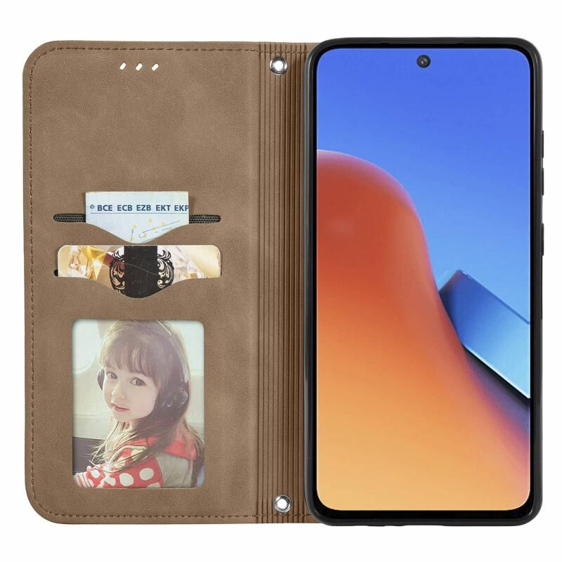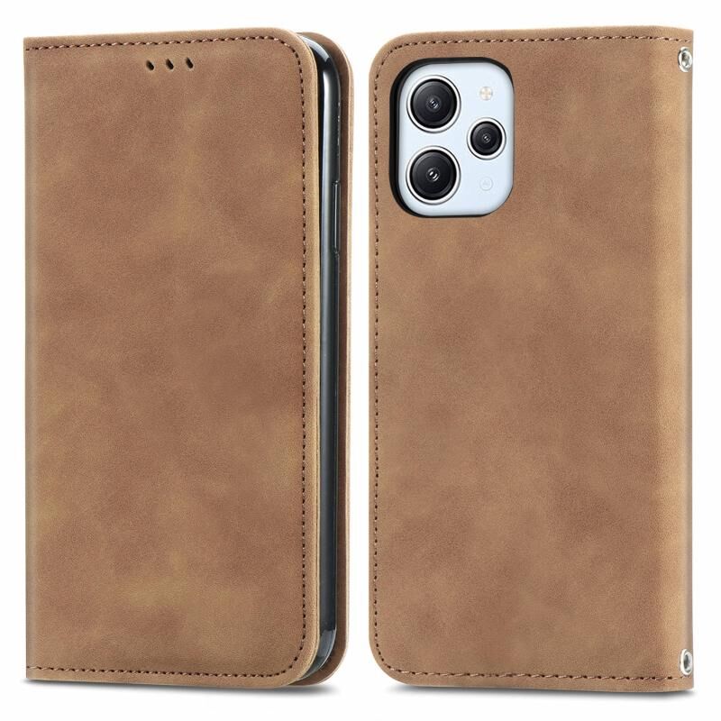 Για Xiaomi Redmi 12 4G ρετρό δέρμα αίσθηση μαγνητική Flip δέρμα τηλέφωνο υπόθεση (καφέ)
