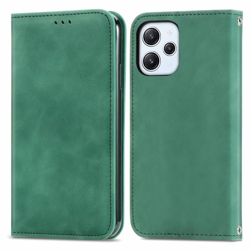 Για Xiaomi Redmi 12 4G ρετρό δέρμα αίσθηση μαγνητική Flip δέρμα τηλέφωνο υπόθεση (πράσινο)
