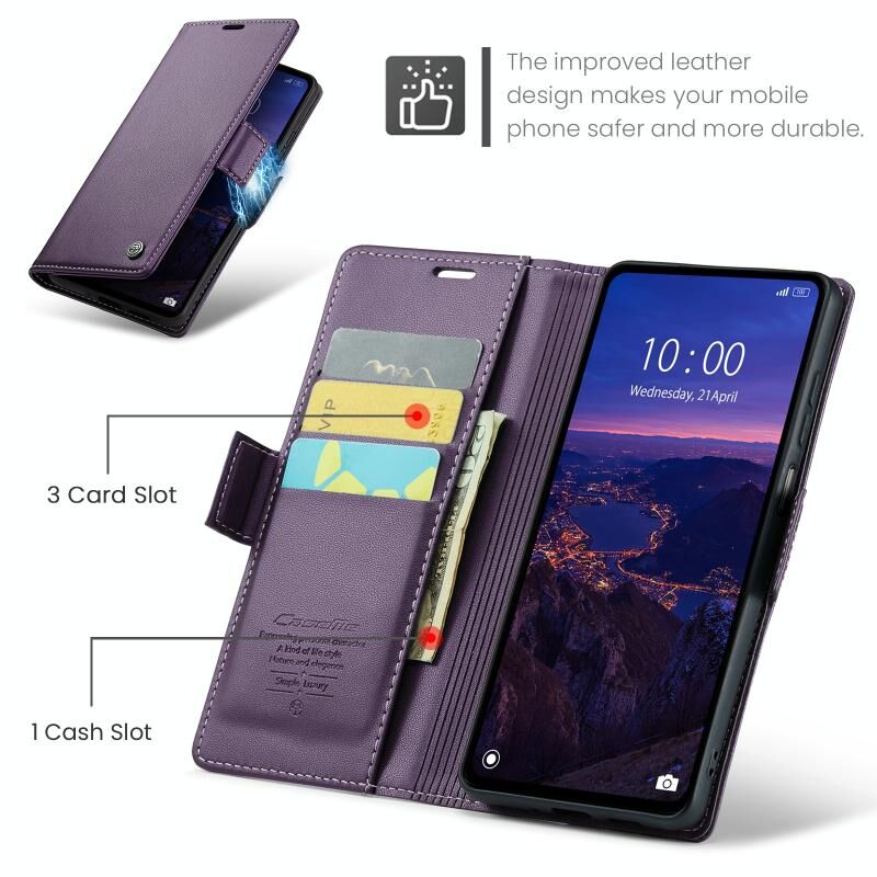 Για Xiaomi Redmi 12 4G/12 5G/Note 12R/POCO M6 Pro 5G CaseMe 023 Butterfly Buckle Litchi Texture RFID Anti-theft Leather Phone Case (Pearly Purple) (CaseMe)