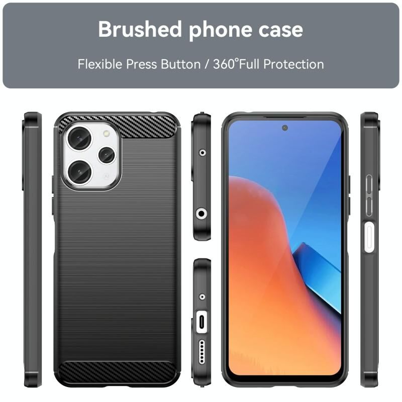 Για Xiaomi Redmi 12 5G βουρτσισμένη υφή Carbon Fiber TPU τηλέφωνο υπόθεση (Μαύρο)