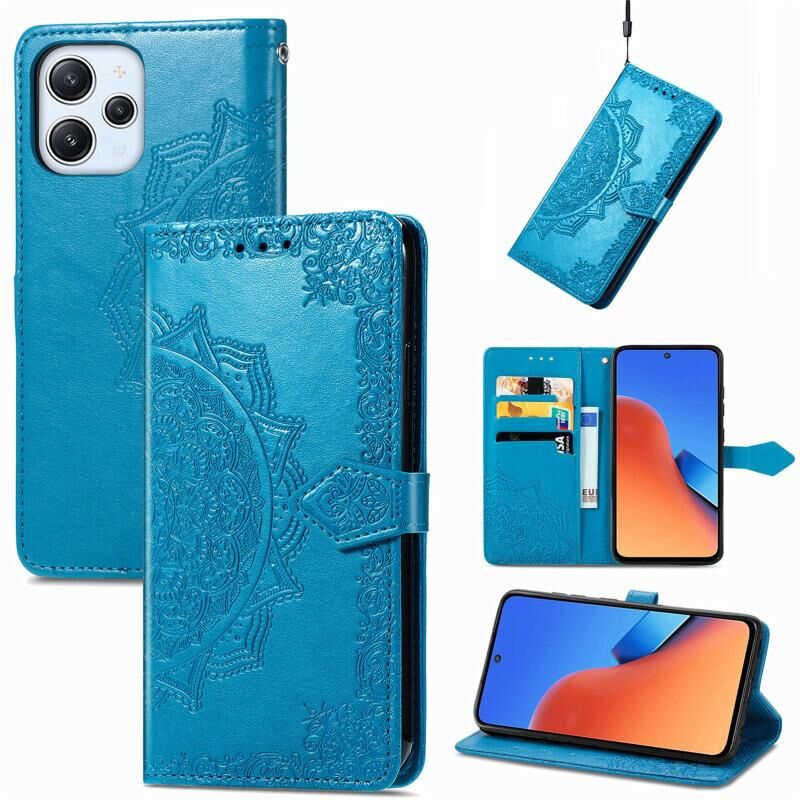 Για Xiaomi Redmi 12 5G Mandala λουλούδι ανάγλυφο δερμάτινη θήκη τηλεφώνου (μπλε)