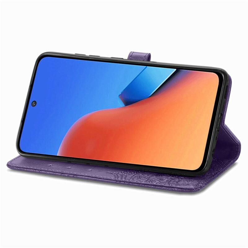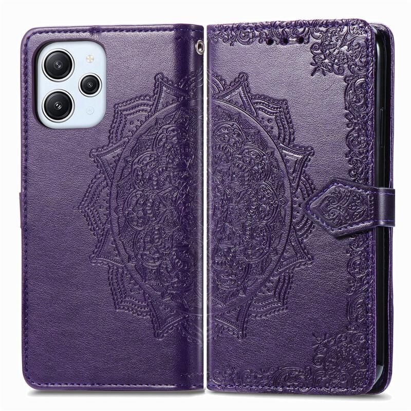Για Xiaomi Redmi 12 5G Mandala λουλούδι ανάγλυφο δερμάτινη θήκη τηλεφώνου (μωβ)
