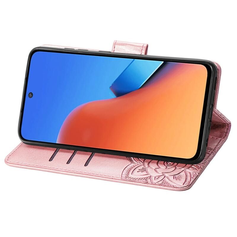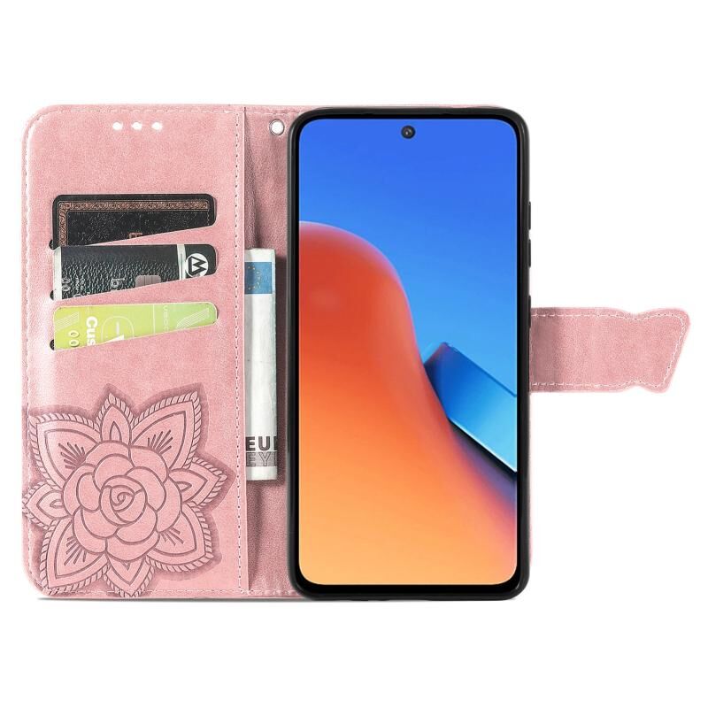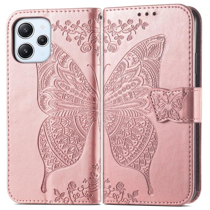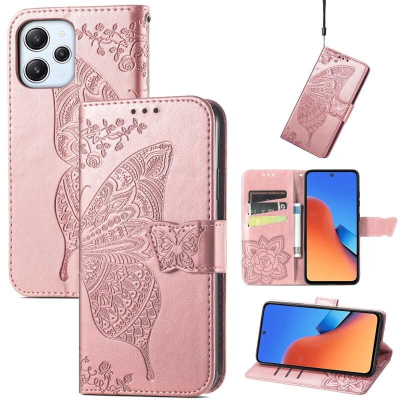 Θήκη τηλεφώνου από δέρμα με ανάγλυφο σχέδιο πεταλούδας και λουλουδιών για Xiaomi Redmi 12 (Ροζ)