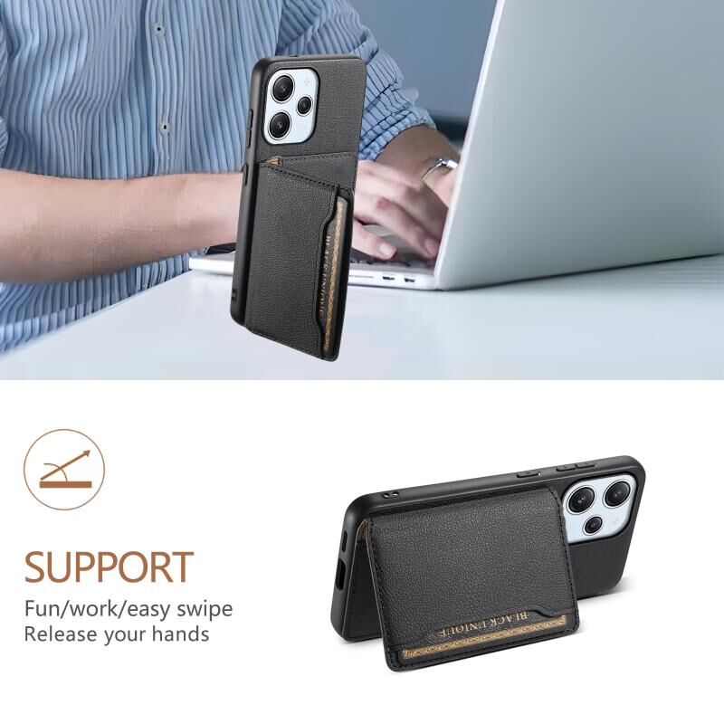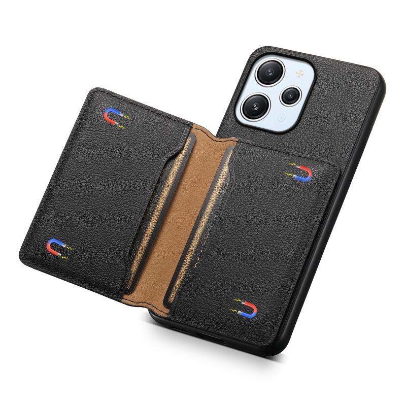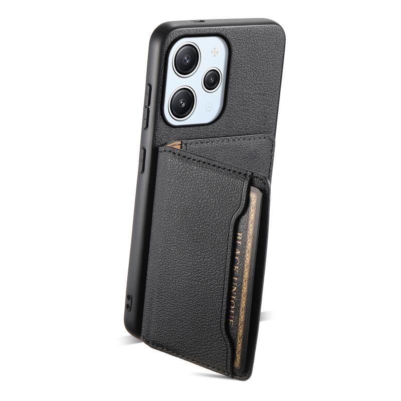 Θήκη Xiaomi Redmi 12 με Υφή Δέρματος Μοσχαριού & Θήκη Κάρτας (Μαύρο)