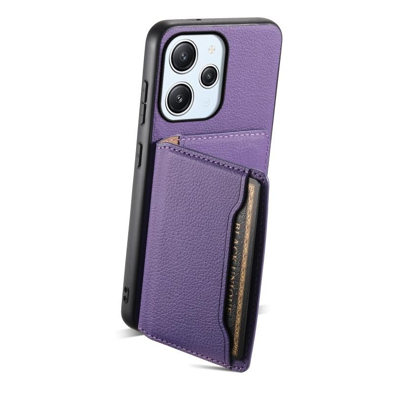 Θήκη τηλεφώνου πλήρους κάλυψης με σχέδιο τσάντας κάρτας με υφή μοσχαριού για Xiaomi Redmi 12 (Μωβ)