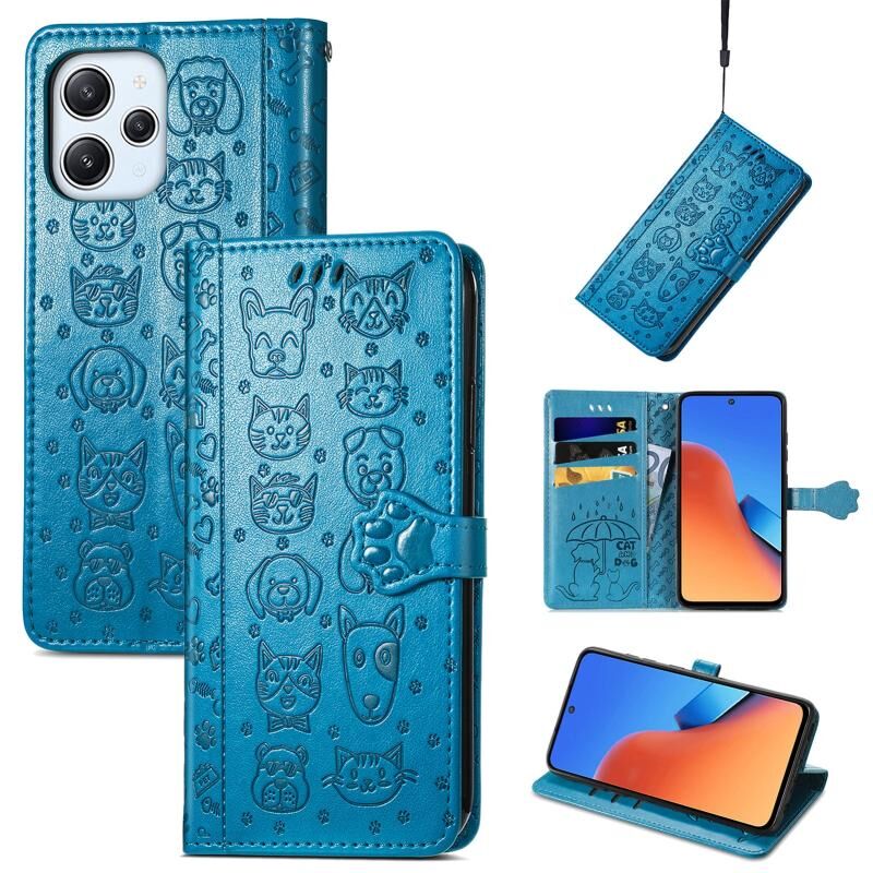 Θήκη τηλεφώνου δερμάτινη ανάγλυφη με σχέδια γάτας και σκύλου για Xiaomi Redmi 12 (Μωβ)