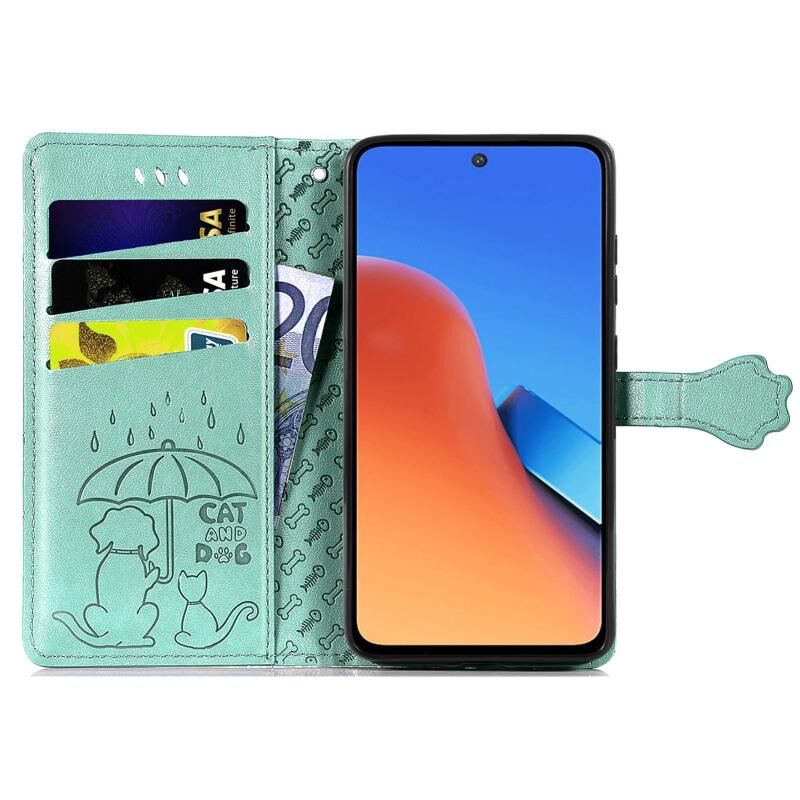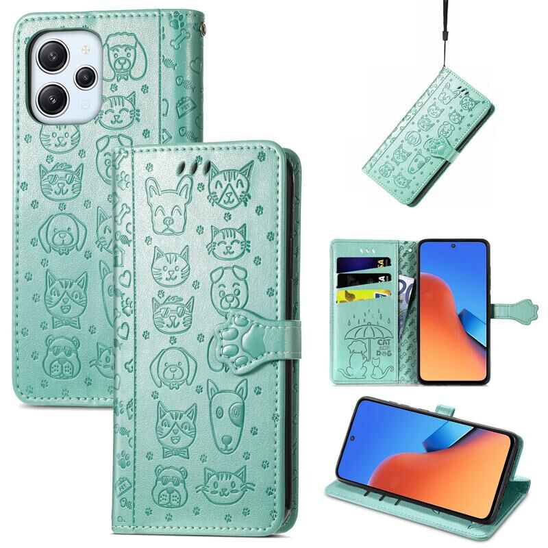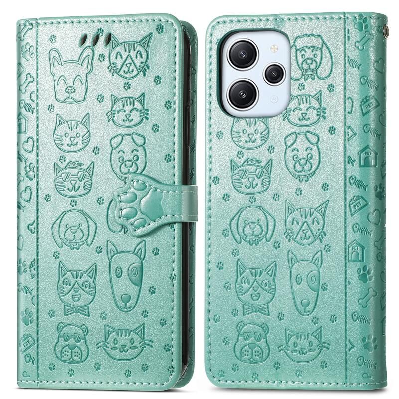 Θήκη τηλεφώνου δερμάτινη ανάγλυφη με σχέδια γάτας και σκύλου για Xiaomi Redmi 12 (Μωβ)